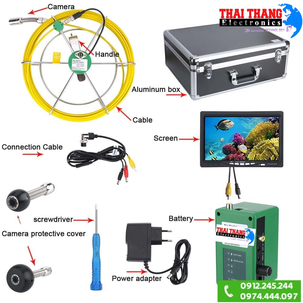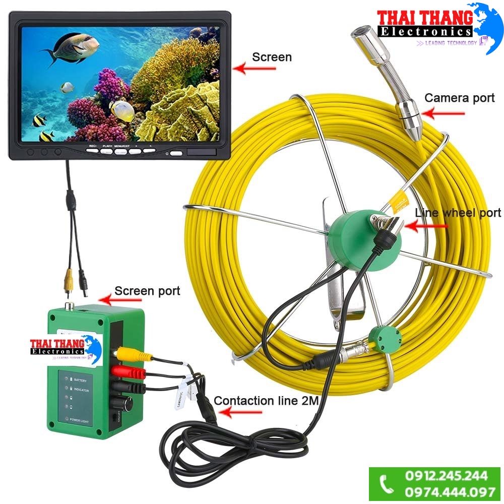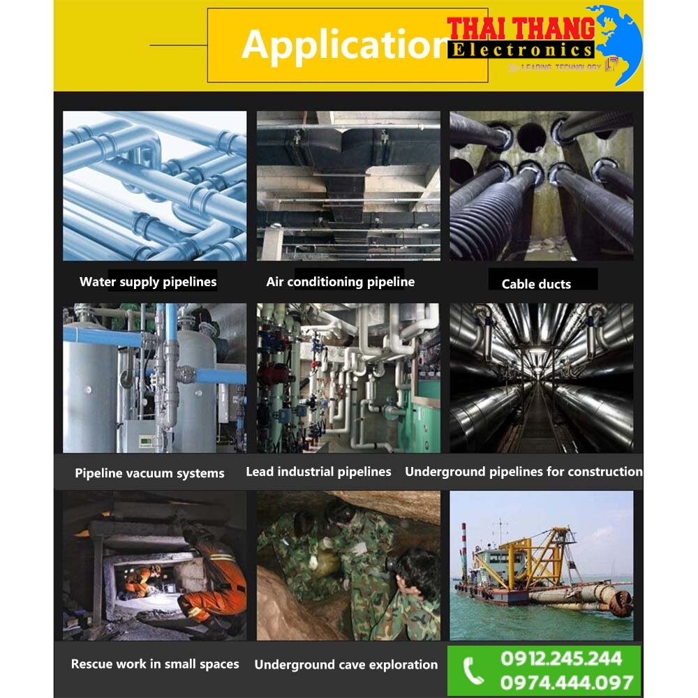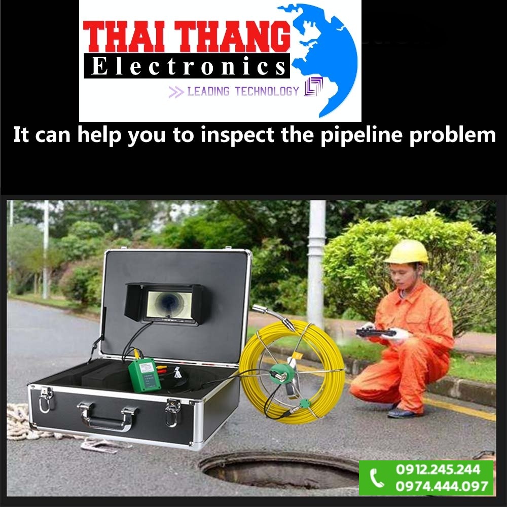 - CAMERA KIỂM TRA ĐƯỜNG ỐNG chuyên dùng để kiểm tra đường ống,cống ngầm,khe kẽ nứt rất nhỏ mà con người không thể vào được,với camera cực nét và đèn led siêu sáng cho hình ảnh rõ nét,trung thực với cuộn dây làm bằng sợi thủy tinh siêu bền bọc bên ngoài bọc nhựa cao cấp chống nước,chống va đập và chịu được mọi điều kiện môi trường khắc nghiệt.Đây là sản phẩm hiện đại và hoàn hảo Chuyên dụng dùng cho kỹ sư xây dựng,kỹ sư đường ống,nhân viên cứu hộ cứu nạn,các nhà địa chất.....
