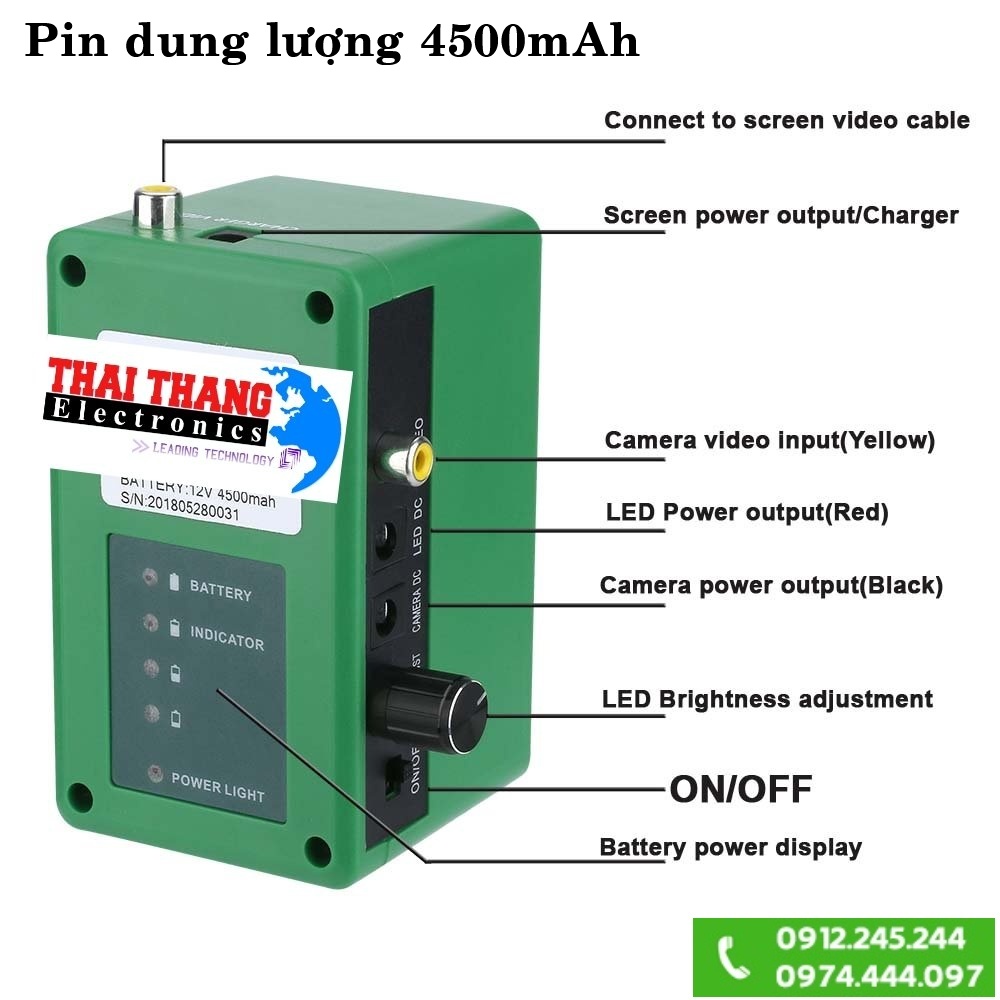 - Bộ sản phẩm bao gồm màn hình lcd,dây dẫn,camera chống nước,acqui và vali chống va đập,chống bụi.