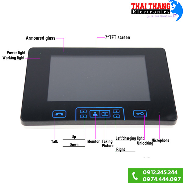 Màn hình LCD 7” cho hình ảnh sắc nét, giao tiếp hình ảnh và âm thanh 2 chiều, nói trực tiếp không cần dùng tay nghe. Có chế độ chụp lại hình ...