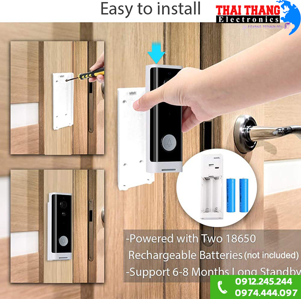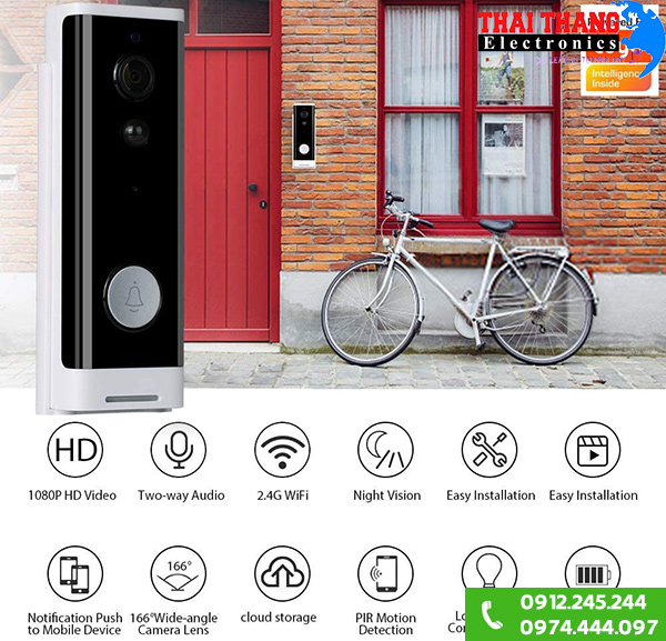 Chuông cửa có hình kết nối Wifi, điện thoại USA