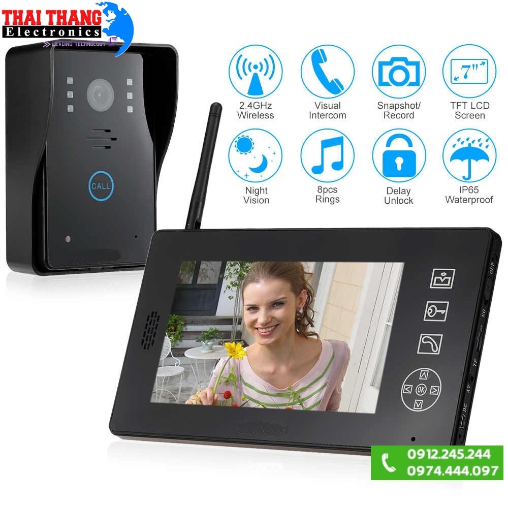CHUÔNG CỬA MÀN HÌNH KHÔNG DÂY 7 INCH