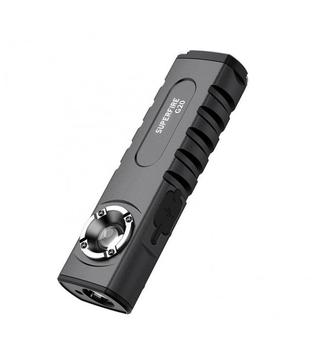 Đèn pin bỏ túi Superfire G20 Thiết kế thêm nam châm phía chân đèn và móc treo giúp cố định đèn ở các vị trí thích hợp, sử dụng khi sửa chữa máy hoặc cắm trại,chất liệu làm từ hợp kim nhôm siêu bền,chịu được tác động mạnh và mang lại trọng lượng nhẹ chỉ 220g,chuẩn chống nước IP44 giúp hoạt động tốt trong môi trường khắc nghiệt,sử dụng pin sạc dụng lượng 2000mAh cho thời gian hoạt động từ 3 đến 7 giờ.
