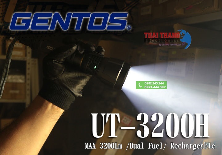Đèn pin siêu sáng chính hãng Nhật Gentos UT-3200H Sử dụng chip led Nhật công suất cao cho cường độ sáng cao nhất 3200 lumens,đèn được trang bị đến 5 chế độ sáng giúp người dùng lựa chọn cho từng công việc gồm chế độ sáng cao (1000lumens), sáng vừa (500lumens), chế độ tiết kiệm (100lumens), chế độ siêu sáng (3200lumens) và chế độ nhấp nháy nhanh,chóa đèn được thiết kế sâu và rộng, bề mặt được tráng ngương tăng cường độ tương phản giúp chùm sáng xa, kết hợp mặt kính bảo vệ chống bụi,chống nước tối đa.