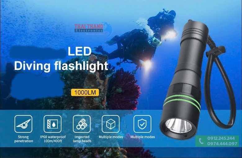 đèn pin lặn - SmallSun ZY-T101. Hàng chính hãng SmallSun (TaiWan), độ bền cao, hoàn toàn chống thấm nước và chịu được áp lực của nước khi làm việc dưới đáy sâu.