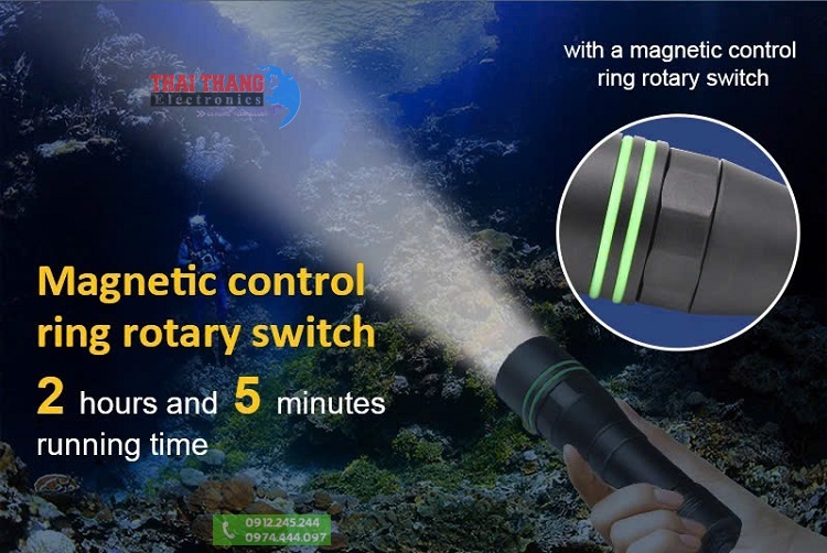 Đặc biệt đèn có thiết kế chống nước chuẩn IPX8,với khả năng lặn sâu đến 100m,giúp người dùng có thể an tâm sử dụng trong môi trường khắc nghiệt nhất,công tắc xoay từ tính được tiện góc cạnh tạo độ bám,chống trơn trượt dễ dàng thao tác bât/tắt khi sử dụng.