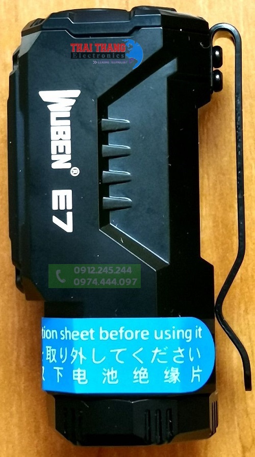 Đèn pin tuần tra đội đầu siêu sáng Wuben E7 Sử dụng nguồn là pin sạc 18650 dung lượng cao cho thời gian sử dụng lên đến 60h khi bật chế độ tiết kiệm,4h khi ở chế độ sáng yếu và 1,2h khi ở chế độ sáng tăng áp kép.