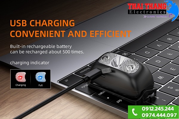 Đặc biệt đèn được trang bị thêm tính năng bật tắt không chạm, giúp người dùng rảnh tay,đầu đèn co gập 45° dễ dàng điều chỉnh hướng chiếu sáng, dây đeo đầu sử dụng chất liệu thun cao cấp co giãn mềm mại tạo cảm giác thoải mái khi sử dụng trong thời gian dài.
