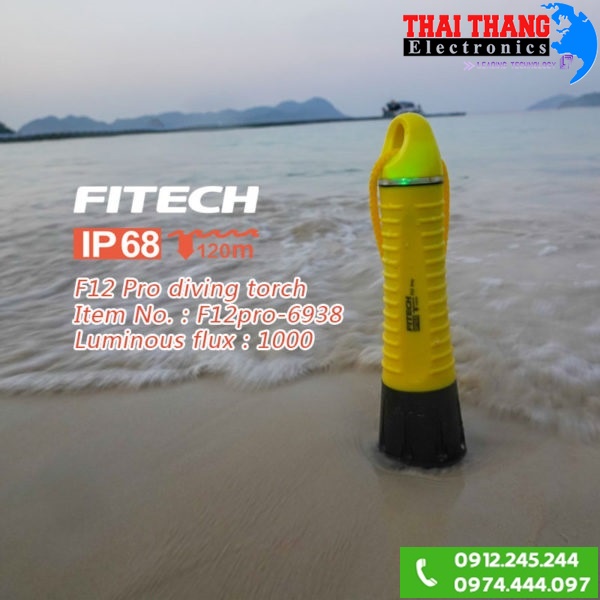 Đèn lặn siêu sáng Fitech F12 Pro Sử dụng led Cree Q5 cho cường độ sáng lên đến 1000 lumen, nhiệt màu 6000K, người dùng sẽ dễ dàng sử dụng cho các hoạt động kiểm tra, sửa chữa, săn bắt hải sản dưới nước; led này có tuổi thọ hoạt động lên đến 100000 giờ giúp người dùng yên tâm trong suốt quá trình sử dụng,khoảng cách chiếu xa của đèn lên đến 150m dưới nước (nước trong) và 500m khi chiếu trên đất liền nhờ vào chóa đèn thiết kế sâu, bề mặt phủ gương nhẵn chuyên dụng,đèn trang bị 3 chế độ sáng gồm sáng mạnh,sáng vừa,SOS sử dụng cho nhiều mục đích chiếu sáng khác nhau.