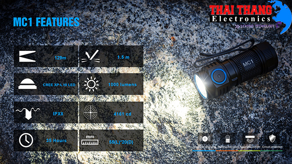 - Sử dụng LED Cree XM-L2 thế hệ thứ hai, độ sáng lên đến 900 lumen, tuổi thọ bóng 100.000 giờ