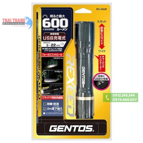 Đèn pin chính hãng Nhật Bản Gentos RX286R Tính năng zoom tụ tỏa chùm tia giúp chùm sáng tỏa rộng ở khoảng cách gần hoặc gom khi chiếu ở khoảng cách xa tùy thuộc vào mục đích chiếu sáng của người sử dụng,khoảng cách chiếu xa đạt 182m.