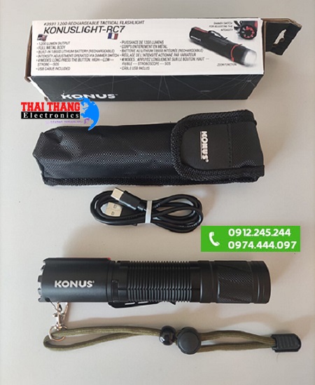 Đèn pin siêu sáng Konus Light RC7 Có kiểu dáng nhỏ gọn,trang bị led Cree XMLD U2 tuổi thọ cao lên đến 100000h chiếu sáng,công xuất cực đại đạt 1200LM có thể tùy chỉnh 4 chế độ sáng gồm sáng mạnh,sáng vừa,nhấp nháy,SOS giúp người dùng sử dụng cho phù hợp với nhiều mục đích chiếu sáng khác nhau.