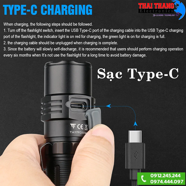 - Bao gồm: thân đèn, móc đeo, pin 18650, sạc 220v, socket pin aaa.