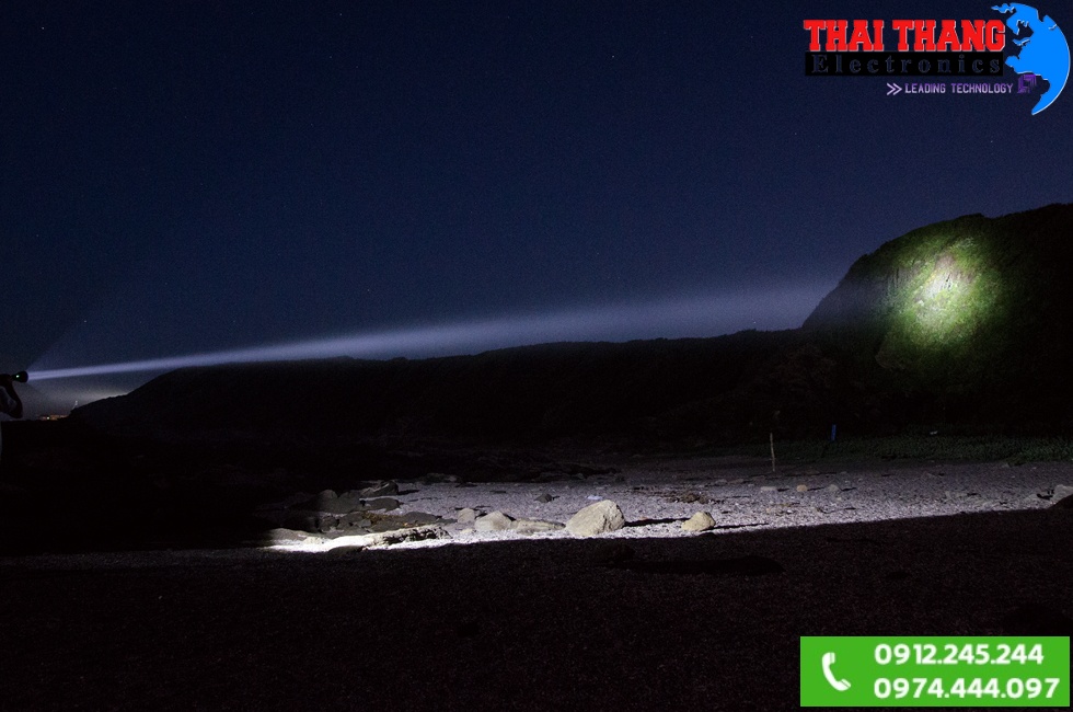 Về pin: Với 4 cell 18650 2200mAh, tổng công suất 8800 mAh, có thể chiếu liên tục mức sáng nhất trong 3 tiếng
