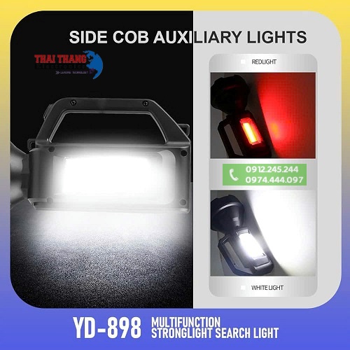 Đèn pin cứu hộ Terino YD-898 Sử dụng led lõi tứ XHP50 cho công suất 23w,quang thông lên đến 2000Lumen,phù hợp cho các hoạt động yêu cầu độ sáng mạnh như tuần tra hoặc cứu hộ cứu nạn,kết hợp led COB, cho cường độ chiếu sáng mạnh, ổn định, phạm vi chiếu xa lên đến 550 mét, đáp ứng tốt các nhu cầu chiếu sáng chuyên nghiệp.