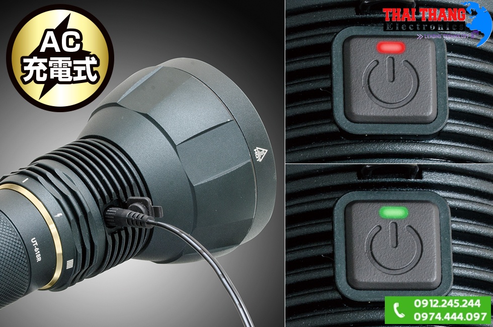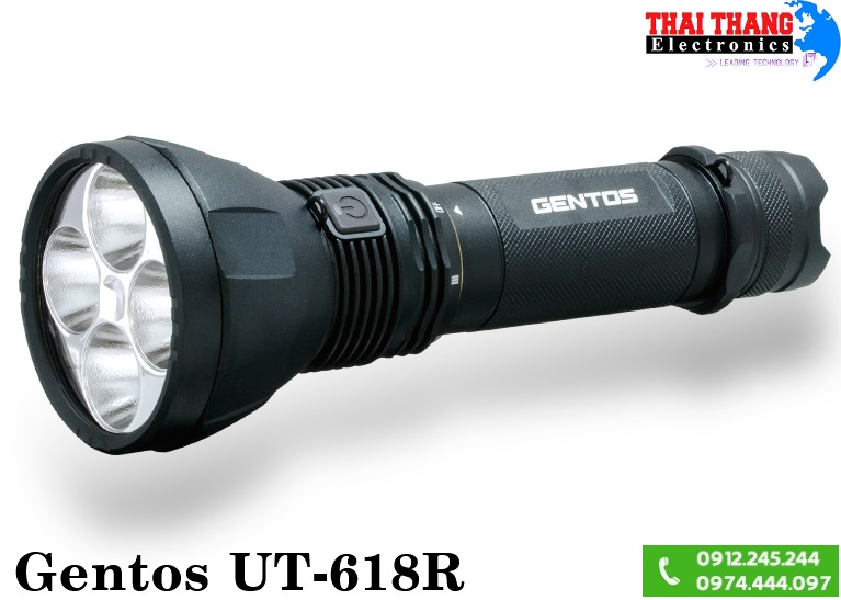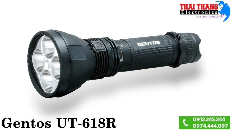 Đèn pin chính hãng Nhật Gentos UT-618R được thiết kế với 4 chip led sáng trắng cho cường độ sáng của đèn đạt 13000 lumen. Đặc biệt đèn được thiết kế đến 6 chế độ sáng cho phép người dùng sử dụng cho từng công việc chiếu sáng, các chế độ sáng gồm chế độ tối đa 13000 lumen, chế độ siêu sáng 5000 lumen, sáng mạnh 1600 lumen, sáng vừa 500 lumen, chế độ tiết kiệm 100 lumen và cuối cùng là chế độ nhấp nháy nhanh, các chế độ này được thay đổi khi xoay trên thân đèn. Chóa đèn được tráng gương chuyên dụng tăng cường phản chiếu ánh sáng, phần kính cường lực được phủ các lớp truyền sáng mạnh cho khoảng cách soi đến 546m trong đêm. Chất liệu đèn làm bằng hợp kim nhôm siêu nhẹ và độ bền cao, chống va đập rơi rớt với độ cao 1m. Thân đèn được tiện CNC các khe tản nhiệt, giúp đèn hoạt động trong thời gian dài mà không bị nóng.