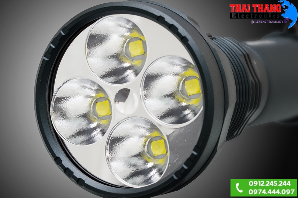 Về pin: Với 4 cell 18650 2200mAh, tổng công suất 8800 mAh, có thể chiếu liên tục mức sáng nhất trong 3 tiếng