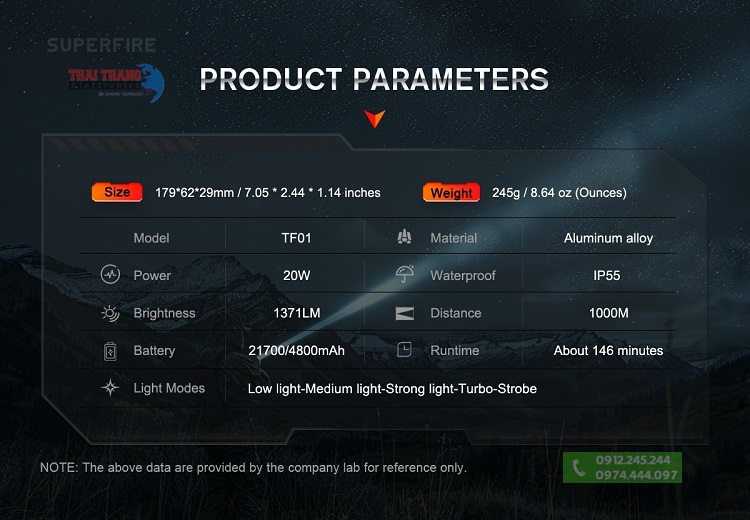 Tính năng đèn pin siêu sáng Superfire Godfire TF01 :