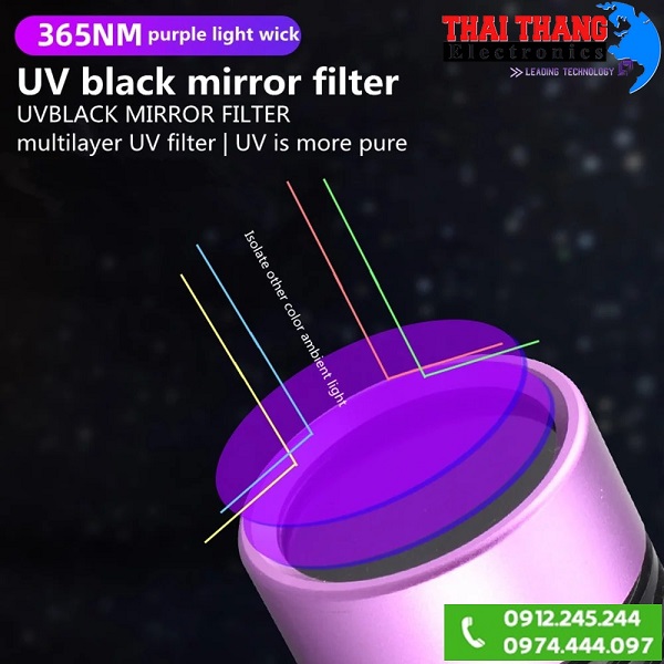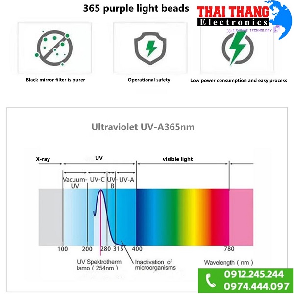 - Sử dụng 6 chip led UV lõi tứ với bước sóng 365nm