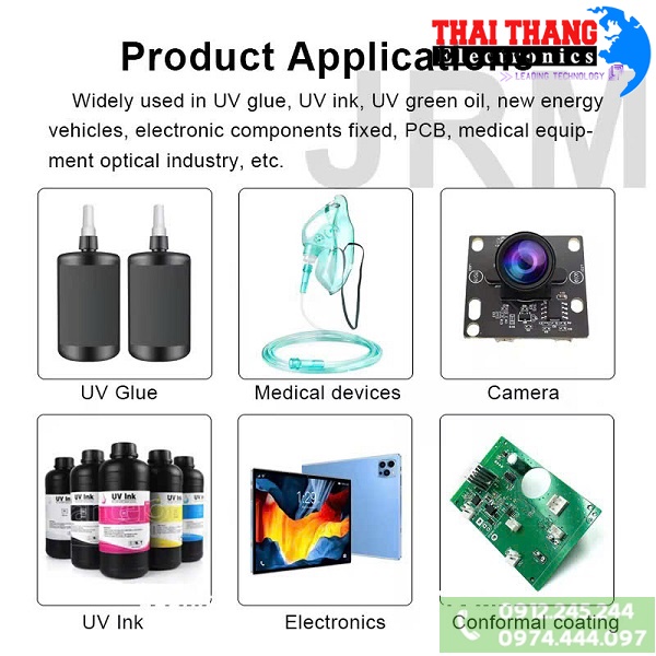 - Thiết bị UV trong ngành điện tử: sấy keo UV điện tử, keo không bóng, sơn UV cho linh kiện.