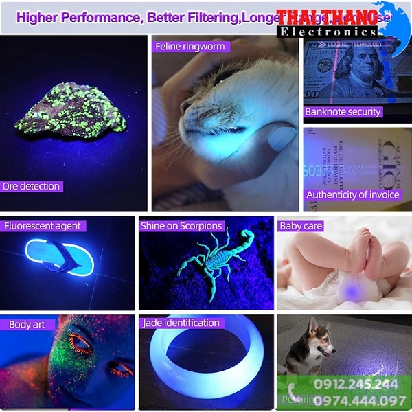 Đèn pin cực tím chính hãng Mỹ UV Winning Light TT20 Trang bị chip UV lõi tứ bước sóng 365nm cho công suất lên đến 20W,tuổi thọ led lên đến 100.000h chiếu sáng giúp người dùng yên tâm trong quá trình sử dụng,kính lọc đen kích thước lớn giúp lọc hoàn toàn ánh sáng từ môi trường xung quanh cho tia UV phát ra luôn ở mức cao, đảm bảo nhận diện vật thể tốt nhất và khoảng cách soi cũng xa hơn các dòng đèn UV khác,đặc biệt đèn trang bị 3 chế độ sáng gồm mạnh, vừa và yếu giúp người dùng chủ động hơn trong các hoạt động soi chiếu.