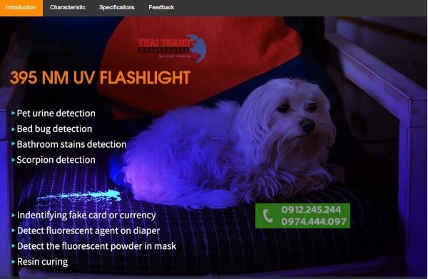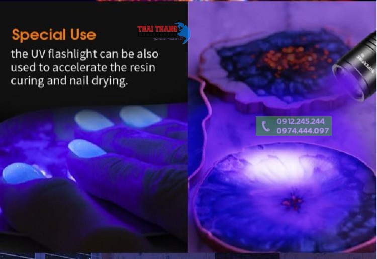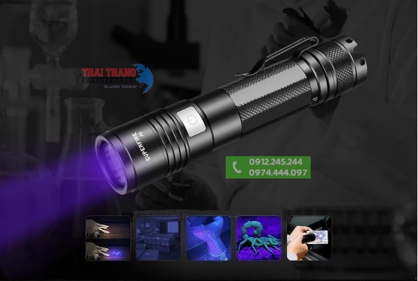 Đèn pin uv soi keo Superfire A5 Sử dụng guồn là pin 18650 dung lượng cao cho thời gian chiếu sáng 1-2h,thân vỏ chất liệu hợp kim nhôm Al6061-T6 trọng lượng siêu nhẹ, độ bền cao chống chịu va đập tốt.