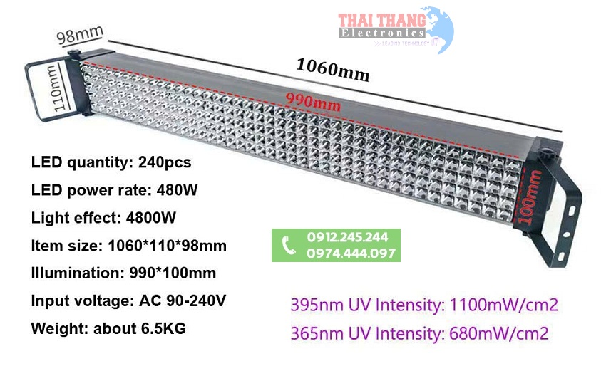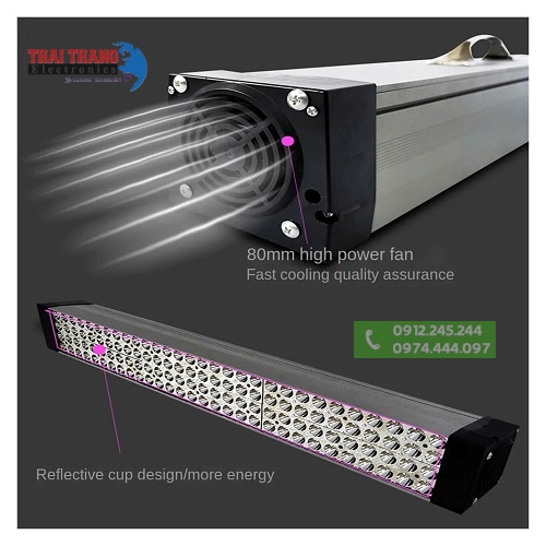 Đèn tia cực tím soi keo công nghiệp Winning light TT3348 Sử dụng nguồn trực tiếp AC 90-240v thuận tiện sử dụng trong thời gian dài,thiết kế bóng dạng cầu lồi 3535 với 240 bóng công suất 480w,hiệu ứng ánh sáng 4800w, cho độ sáng cao,chùm sáng tỏa rộng trên bề mặt vật thể,thân vỏ sử dụng vật liệu hợp kim nhôm cho trọng lượng nhẹ,trang bị quạt tản nhiệt giúp thiết bị hoạt động trong thời gian dài không lo quá nhiệt,dễ dàng bảo quản khi sử dụng.