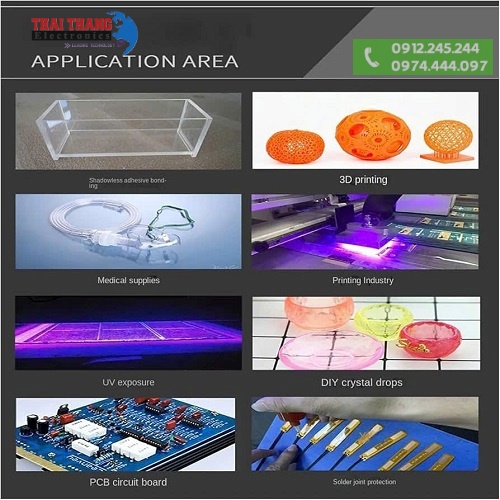 • Sản xuất công nghiệp: Dán keo UV, bảo dưỡng vật liệu nhựa, màng phim.