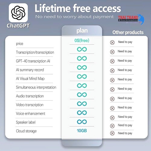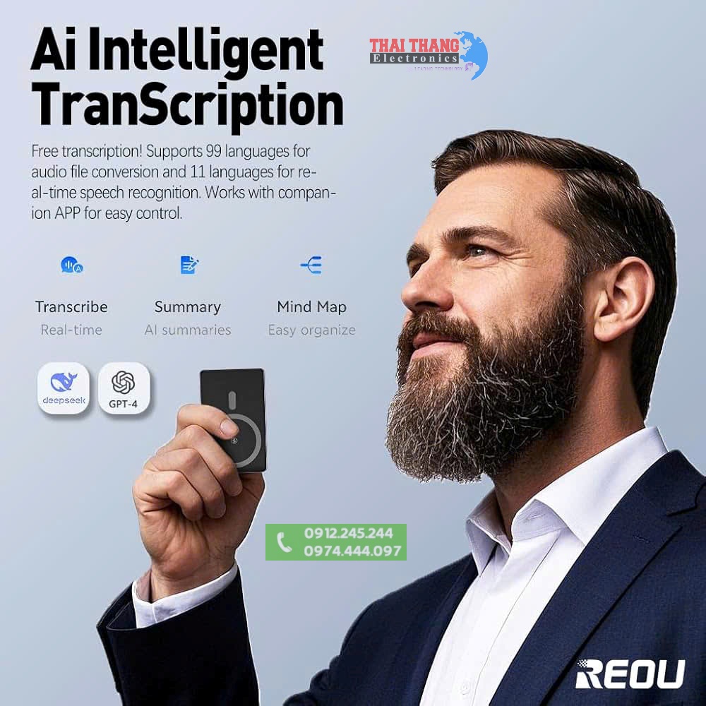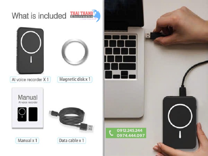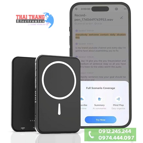 Ghi âm – Phiên âm AI – Sạc dự phòng. |