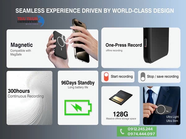 - MÁY GHI ÂM thế hệ mới này được ứng dụng nhiều tính năng hiện đại của công nghệ thiết bị ghi âm hiện nay,sử dụng micro siêu nhạy được
