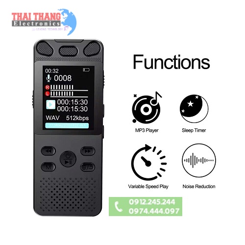 Chức năng lọc tiếng ồn AGC,mang lại âm thanh rõ ràng, sắc nét,đặc biệt, thiết bị hỗ trợ theo dõi âm thanh trực tiếp và kích hoạt ghi âm bằng giọng nói, giúp bạn không bỏ lỡ bất kỳ nội dung quan trọng nào.