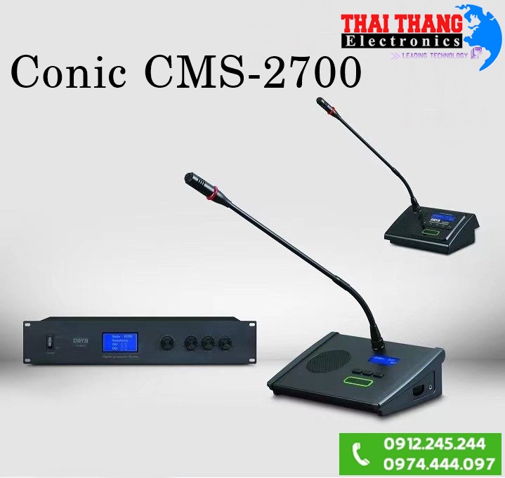 Micro hội nghị Hàn Quốc Conic CMS-2700 sử dụng lõi CPU RISC cho bộ trung tâm cho hệ thống luôn hoạt động ở mức ổn định và các tác vụ đều được xử lý nhanh nhất. Mạch bảo vệ tránh vượt điện áp định mức giúp quá trình hoạt động luôn ổn định. Các tính năng quan trọng khác như giới hạn thời gian phát biểu, ưu tiên chủ tịch và đặc biệt là tính năng biểu quyết thường sử dụng trong các cuộc họp. Bộ trung tâm trang bị màn hình LCD kích thước lớn và có đèn nền hỗ trợ quan sát trong môi trường ánh sáng yếu. Chất liệu làm từ thép không gỉ bảo vệ sản phẩm khỏi các tác động mạnh hoặc các yếu tố môi trường.