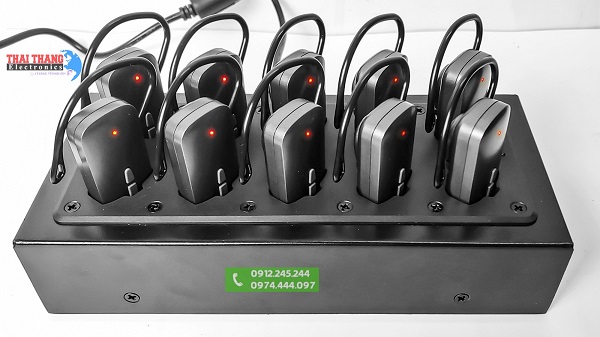 Máy phát dẫn đoàn được trang bị pin lithium dung lượng cao cho thời gian hoạt động liên tục từ 6-20h,tai nghe thành viên tích hợp pin lithium cho thời gian hoạt liên tục 8h,loại bỏ sự cố sạc thường xuyên và đảm bảo sử dụng không bị gián đoạn suốt cả ngày,ngoài ra có thể tùy chọn phụ kiện đế sạc 10-30 máy thuận tiện dễ dàng sạc cho nhiều tai nghe cùng lúc. ( đế sạc mua riêng )