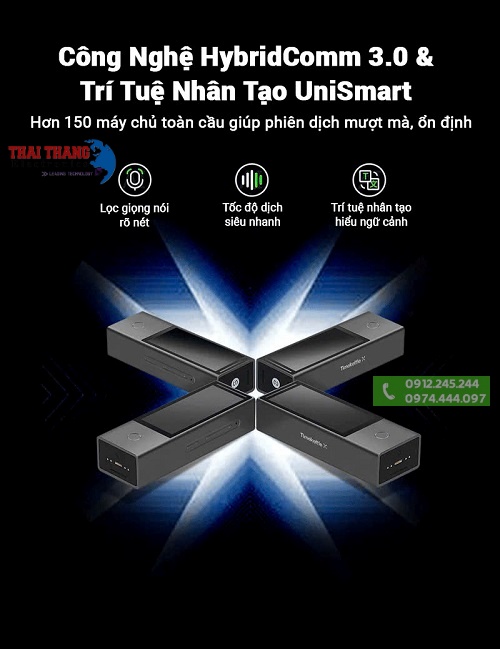 - Nhờ công nghệ HybridComm AI độc quyền, thiết bị có khả năng học ngữ cảnh, cải thiện độ chính xác trong hội thoại thực tế, kể cả trong môi trường nhiều tiếng ồn hoặc hội thoại chuyên ngành.