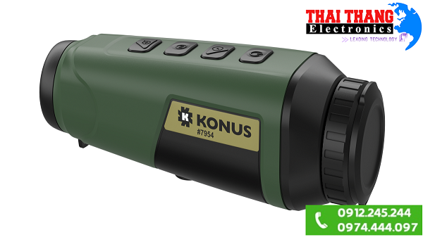 Ống nhòm nhiệt Konus #7954 Trang bị cảm biến NETD <35mK kết hợp cảm biến hình ảnh Vanadium Oxide 17µm độ phân giải 160x120px giúp dễ dàng nhận dạng các đối tượng có kích thước khác nhau trong nhiều môi trường khác nhau,độ phóng đại từ 0.6 đến 2.4x giúp phát hiện các mục tiêu như xe với khoảng cách 559m, nhận biết xe 140m và nhận dạng chính xác xe trong khoảng 70m,đối với người khoảng cách phát hiện là 200m, nhận biết là 46m và nhận dạng chính xác là 23m,đường kính len 6.2mm kết hợp trường nhìn 14.7°x18.7° dễ dàng theo dõi các mục tiêu di chuyển nhanh cũng như có góc quan sát vô cùng rộng.