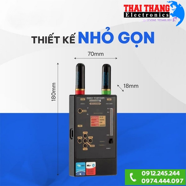 thiết bị phát hiện máy nghe trộm,camera quay lén đảm bảo cho sự an toàn của bạn,thiết bị sử dụng công nghệ dò sóng vô tuyến kỹ thuật số băng thông rộng với dải tần cao 1 MHZ-8000 MHZ,cho phép phát hiện tất cả các loại camera không dây,thiết bị nghe lén,cho dù nhỏ đến đau hoặc giấu kín ở bất kì đâu như : phòng họp,phòng khách sạn,phòng thay đồ....chỉ cần 1 thao tác đơn giản là xoay núm ...