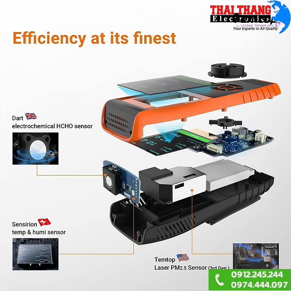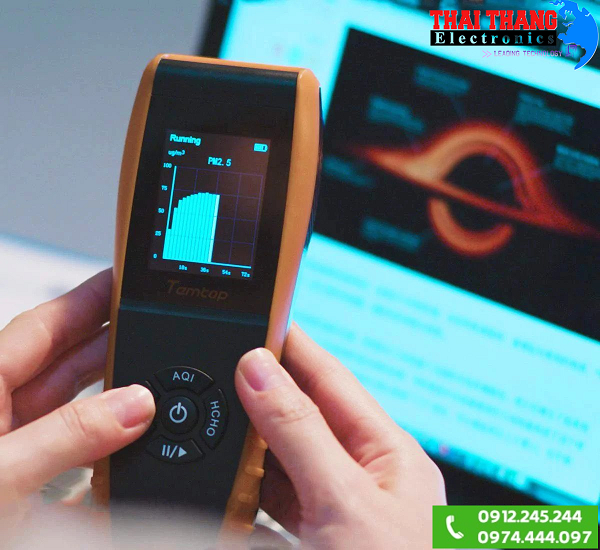 - Là dòng máy đo 2 lượng bụi PM2.5, PM10, bụi thông thường, khí HCHO, AQI, nhiệt độ và độ ẩm