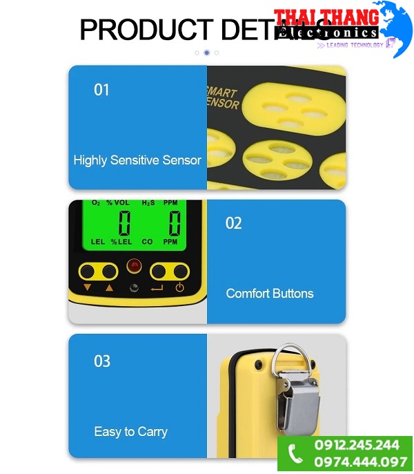 Oxygen / Carbon Monoxide / Hydrothion / Combustible Gas (Khí Oxy, CO, H2S, Khí dễ cháy) |