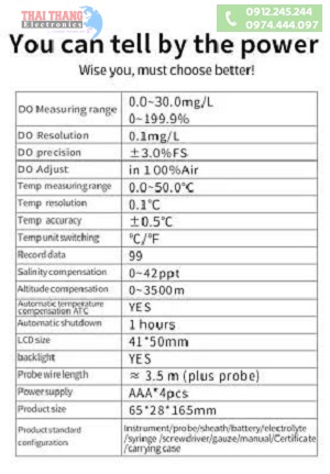 - Có phạm vi đo oxy hòa tan trong nước ( DO ) 0.030.0mg/L,/ 0 đến 199,9% ,thang chia chỉ số nhỏ nhất chỉ 0.1mg/L sai số thấp ±3.0%FS