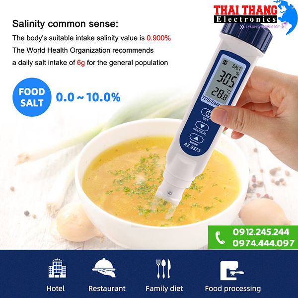 MÁY ĐO ĐỘ MẶN TRONG NƯỚC VÀ TRONG CHẾ BIẾN THỰC PHẨM AE8372