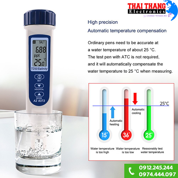 Máy đo độ mặn và nhiệt độ trong nước AE-8372 Là thiết bị chuyên dụng để đo và xác định độ mặn của nước biển hay nước sản xuất và nhiệt độ, độ mặn thực phẩm,nước sinh hoạt hoặc nước tưới tiêu,nuôi trồng thủy sản….…