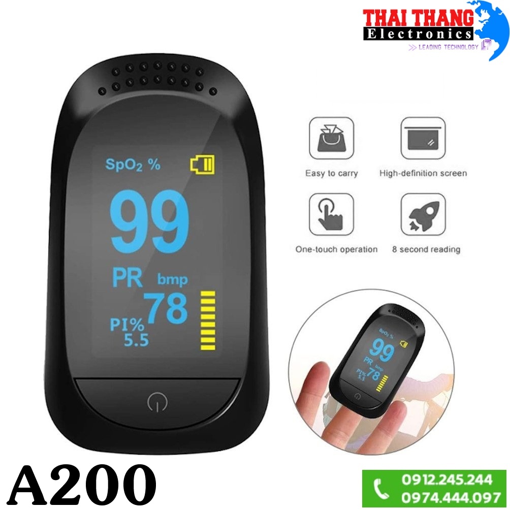 Máy đo nồng độ oxy trong máu SpO2 A200 là dòng sản phẩm dùng để xác định nồng độ oxy trong máu do liên quan đến các bệnh về dường hô hấp, phổi tắc nghẽn mãn tính hoặc theo dõi F0, F1 tại nhà. Sản phẩm liên doanh Mỹ với kiểu dáng nhỏ gọn, dễ dàng mang theo bền người để sử dụng mọi lúc, mọi nơi. Sản phẩm đạt tiêu chuẩn FDA của Hoa Kỳ về chăm sóc sức khỏe, y tế.