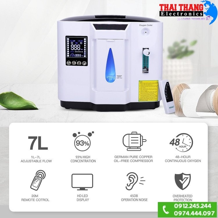 Máy tạo oxy cho gia đình được tổ chức CE FDA Hoa Kỳ phê duyệt và được bộ y tế cho phép lưu hành. Máy sử dụng công nghệ PSA tách oxy trực tiếp từ không khí sao đó cung cấp trực tiếp đến bệnh nhân thông qua đường mũi. Sản phẩm cung cấp oxy tinh khiết từ 30 đến 90%, tương đương các hệ thống cung cấp oxy trên thị trường. Độ ồn của máy chỉ 35dB, đạt tiêu chuẩn kỹ thuật của thiết bị y tế, công nghệ chống rung giúp máy hoạt động êm ái nhất mà không gây ảnh hưởng đến người bệnh.