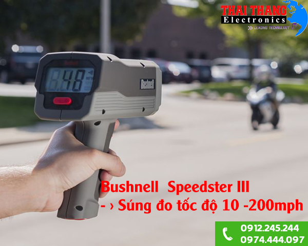 Máy đo tốc độ cầm tay Bushnell Speedster III đo được tốc độ từ 10 đến 200 dặm một giờ với các vật thể có kích thước khác nhau với độ chính xác cao +/-2kph. Với các vật có kích thước như quả bóng chày tốc độ đo được vào khoảng 10-110 dặm một giờ ở khoảng cách 90ft (30m), đối với những vật như ôtô vận tốc có thể đo được từ 10 đến 200 dặm/giờ ở khoảng cách lên đến 1500ft (450m). Công nghệ hiện đại được tích hợp bên trong súng đo tốc độ này sẽ giúp khuếch đại tín hiệu, lọc và số hóa tín hiệu từ tín hiệu tương tự sang kỹ thuật số (ADC) và chuyển sang chip sử lý tín hiệu số DSP. Sử dụng các thuật toán phức tạp, chip DSP của Bushnell sẽ lọc các tín hiệu sai và tín hiệu yếu để xác định được tốc độ chính xác nhất của đối tượng cần đo. Súng đo tốc độ trang bị công nghệ truyền dẫn không dây cho phép kết nối với màn hình không dây (màn hình này được bán riêng không đi kèm bên trong sản phẩm), màn hình LCD không dây này giúp hiển thị tốc độ cùng các thông số, số liệu thông kê, giá trị trung bình của các kết quả đo. Chế độ đo liên tục giúp bạn có thể đọc nhanh sự thay đổi về tốc độ của các vật thể di chuyển liên tục (yêu cầu kích hoạt chế độ này).