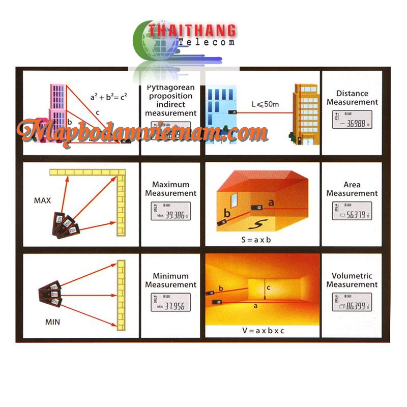 + Thước điện tử SW80 + Máy đo khoảng cách bằng laser SW80 Sản phẩm ứng dụng công nghệ Laser để đo khoảng cách, diện tích, khối lượng chính xác, nhanh chóng và thuận tiện. Với khả năng đo 80m ( 262ft) với khả năng chênh lệch chỉ 2mm . Ứng dụng định lý toán học Pythagore để tính toán khoảng cách , chiều dài khi không thể trực tiếp đo đạc bằng thước. Có khả năng lưu 99 chỉ số đo , chuyển đổi đơn vị ( mét, inch và feet ) và màn hình LCD độ nhạy thay đổi cao. Ứng dụng chính trong xây dựng , thiết kế và trong các ngành công nghiệp, văn phòng, bất động sản, công trình giao thông.v.v.... Thiết kế nhỏ gọn, tiện lợi trong công việc. Cũng như các ... |