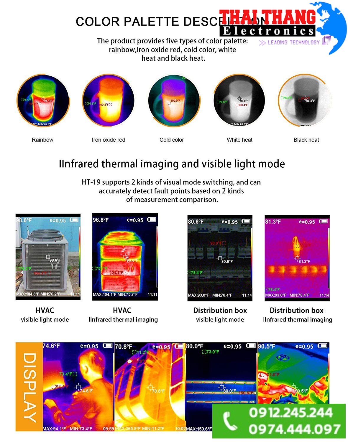 Camera ảnh nhiệt HT18 là dòng sản phẩm xác định chính nhiệt độ từ khoảng cách xa dưới dạng ảnh nhiệt, người dùng sẽ không phải chạm trực tiếp vào vật cần đo như các dòng truyền thống trước đây, điều này sẽ đảm bảo an toàn lao động cho người trực tiếp sử dụng máy. Sản phẩm sử dụng để xác định thân nhiệt của người, nhiệt độ của máy móc, linh kiện điện tử, xác định chính xác vị trí xảy ra tình trạng quá nhiệt để kịp thời xử lý. Máy sử dụng giám sát y tế tại bệnh viện, trường học, bến xe, sân bay, cửa khẩu, sửa chữa máy móc, khu công nghiệp, nhà máy, điện lực,….