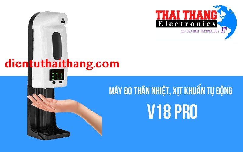 Máy đo thân nhiệt và xịt khuẩn V18-Pro là dòng sản phẩm có tính năng đo và xác định chính xác nhiệt độ cơ thể từ xa kết hợp với tính năng xịt khuẩn hoàn toàn tự động mà không cần người trực tiếp điều khiển máy. Sản phẩm nhằm đảo bảo an toàn về khoảng cách trong công tác phòng chống dịch, đồng thời tiết kiệm thời gian, chi phí và hoàn toàn không tốn nhân lực.