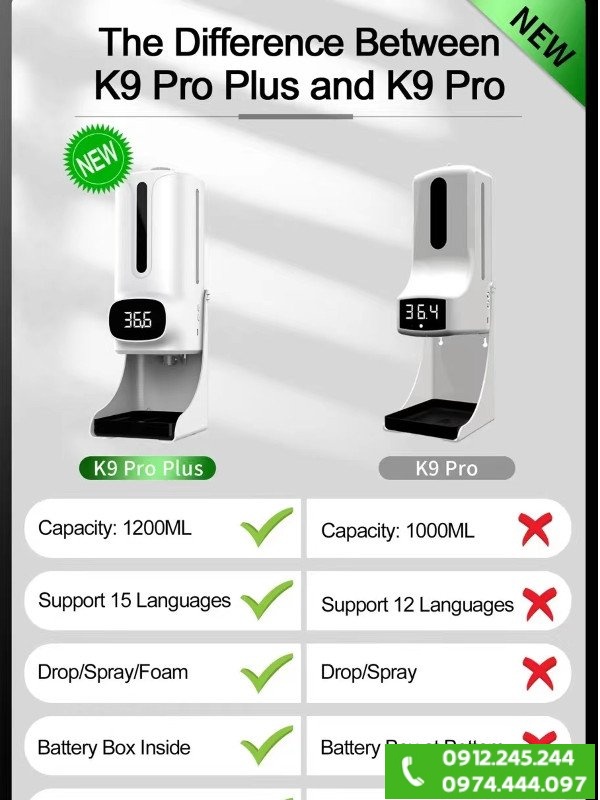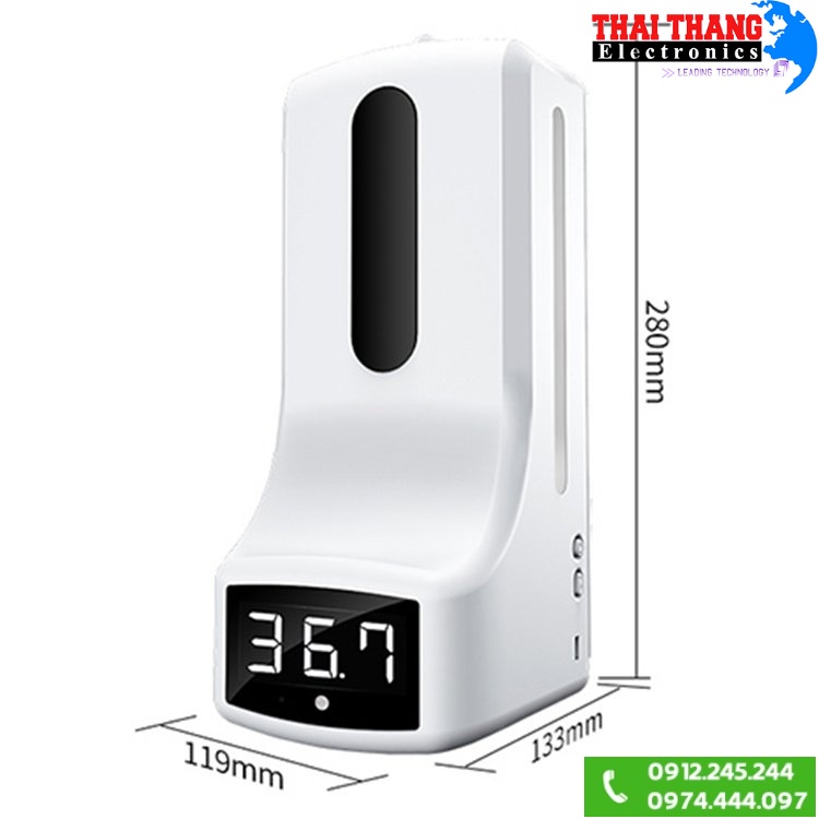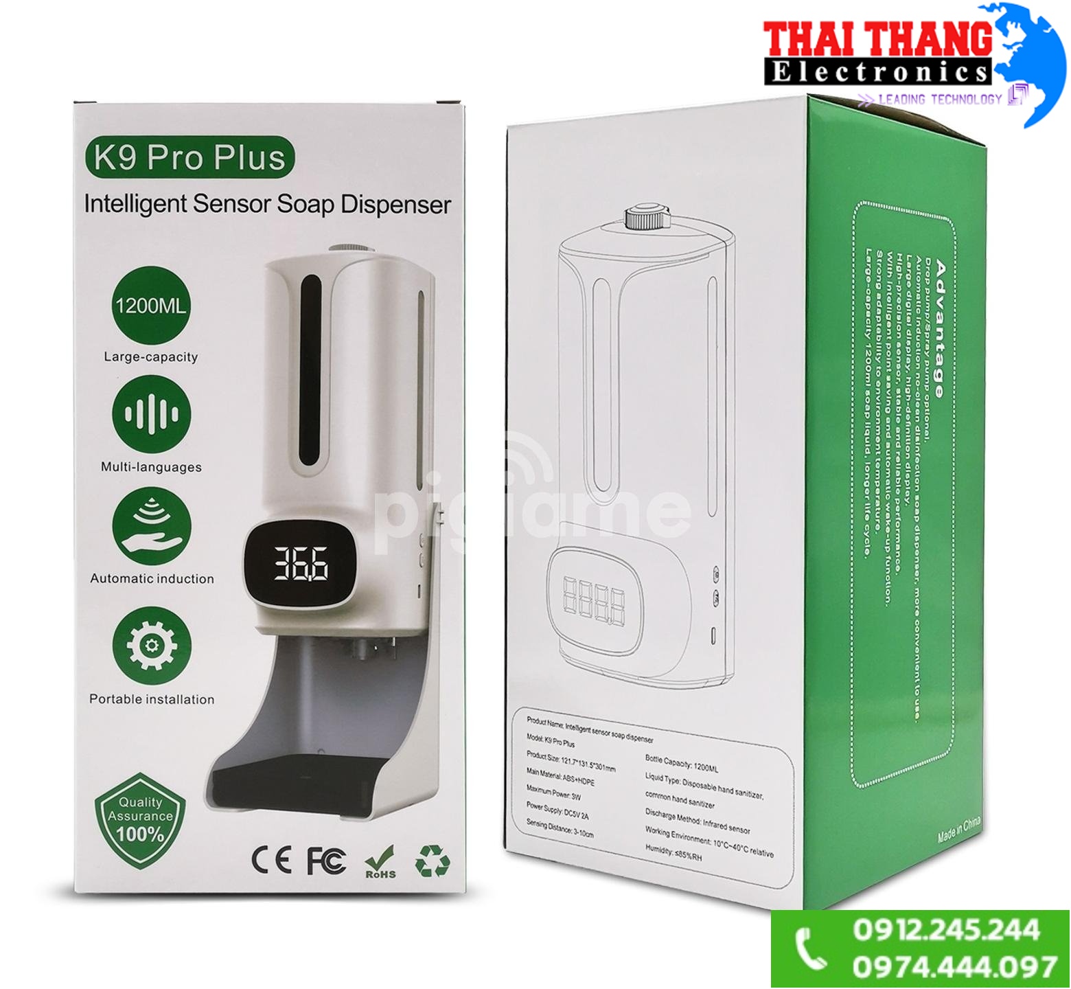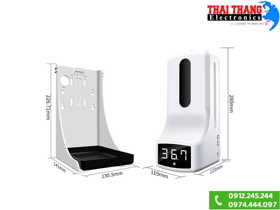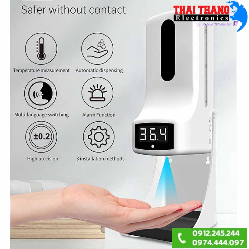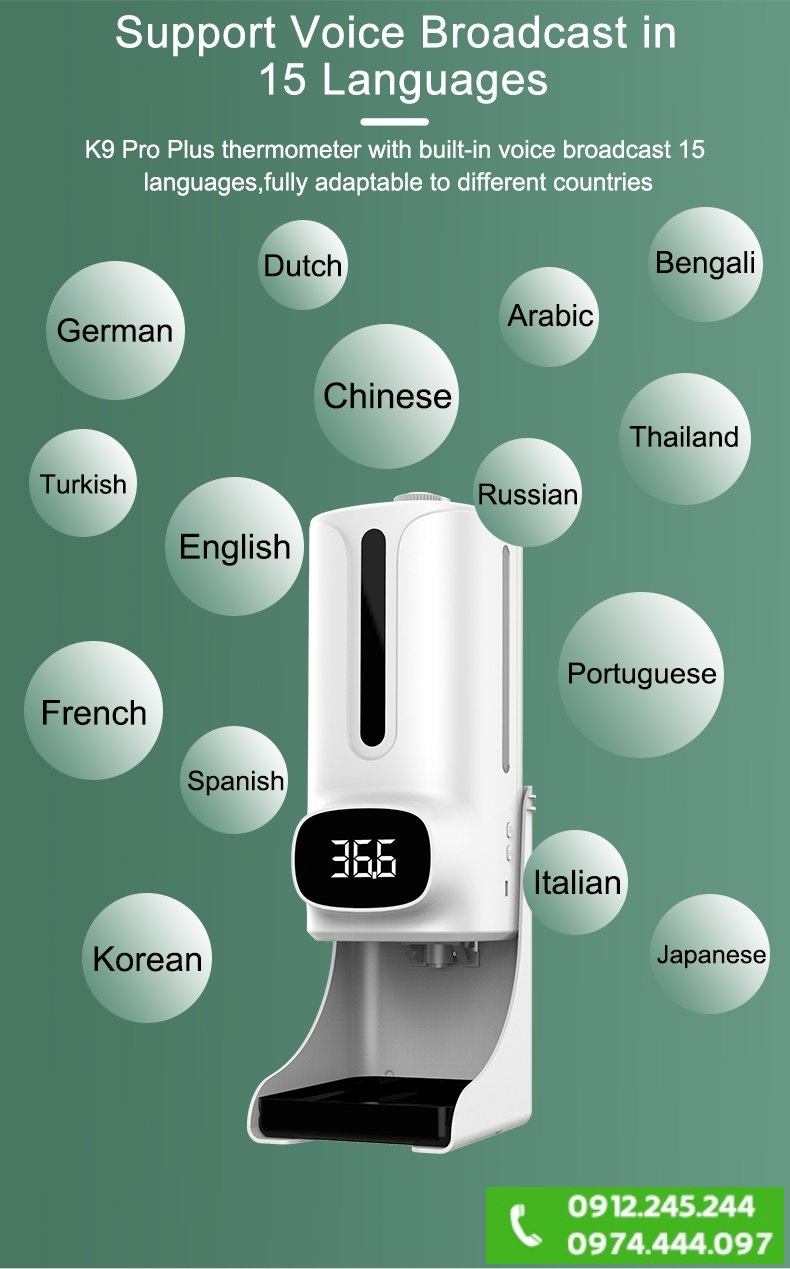 Máy tự động đo thân nhiệt và xịt khuẩn K9 pro max là dòng sản phẩm đo thân nhiệt hiện đại và chính xác nhất thị trường hiện nay. Máy sử dụng hai cảm biến đo trán và đo tay công nghệ Nhật với độ chính xác cao, thời gian cho kết quả nhanh, kèm theo đó là tính năng xịt khuẩn cũng hoàn toàn tự động. Với thiết kế sang trọng nên có thể sử dụng máy ở nhà hàng, khách sạn, nhà ở, trường học, bệnh viện, siêu thị, văn phòng, nhà ga, sân bay, trung tâm thương mại,….