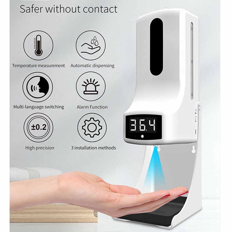Máy đo nhiệt độ cơ thể từ xa K9 Pro Plus có thể đo nhiệt độ trong khoảng từ 0 đến 50°C, sai số chỉ ± 0.2°C và đặc biệt máy chỉ cần 500ms để chỏa kết quả. Khi phát hiện thân nhiệt của người đo vượt quá mức cho phép, máy sẽ phát ra tín hiệu cảnh báo bằng đèn nhấp nháy hoặc phát ra âm thanh giúp cho nhân viên y tế kịp thời xử lý. Các thông số đo được sẽ hiển thị trên màn hình LCD độ nét cao, giúp người đo dễ dàng quan sát. Bên cạnh tính năng tự động đo thân nhiệt, máy còn được trang bị thêm chế độ tự động xịt khử khuẩn với 3 chế độ xịt gồm phun sương, chảy giọt và xịt bọt. Bình đựng dung dịch khử khuẩn có dung tích lên 1200ml cho thời gian sử dụng lâu dài. Máy được thiết kế gắn cố định trên vách tường hoặc cơ động sử dụng ở các địa điểm khác nhau thông qua việc gắn vào chân đế (không kèm theo sản phẩm).